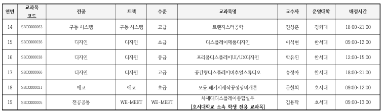 - 최대 수강 가능 학점: 6학점 (혁신융합대학 과목 포함