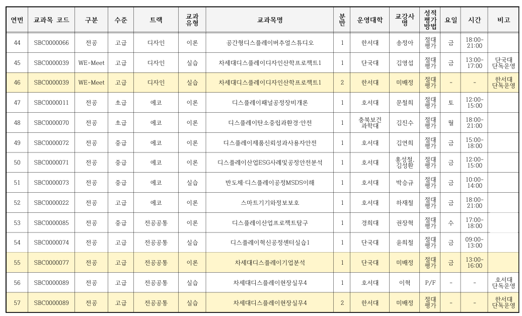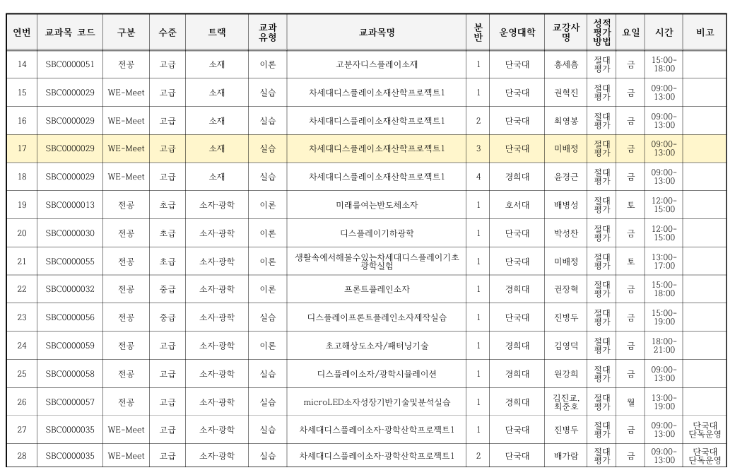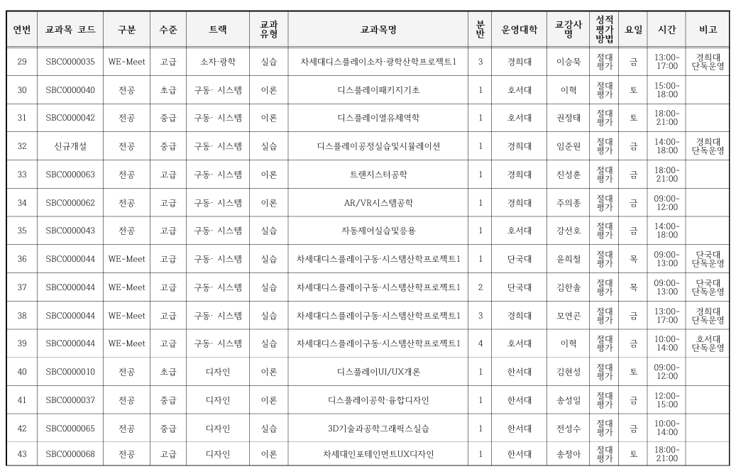 2026-1학기 차세대디스플레이 혁신융합대학 교과목 수강신청 안내(추가 수강신청 : ~2.14.(토)까지)
