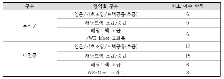 5. 부전공 및 다전공 영역별 최소 이수 학점(조건)